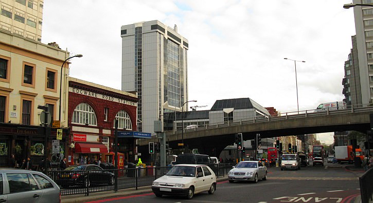 Edgware Road (Bakerloo) station and the flyover looking south, this scene is a stone’s throw from the canal
