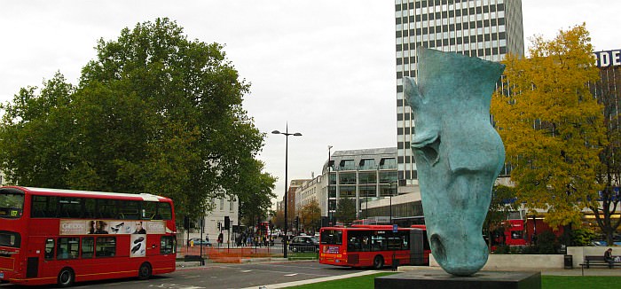 View of Edgware Road at Marble Arch. In the summer of 2009 the upturned horse’s head provided a new identitiy marker for Edgware Road