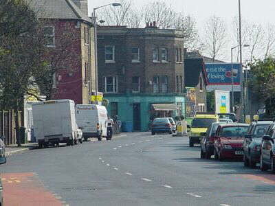 This view (below) looks north to Vesta Road, and this section is where Shardeloes Road uses the old canal. After the canal closed, the route a country lane of sorts – as seen on old maps of the area – to serve the brickfields that were built on the site of the New Cross locks. The lane evolved eventually into Shardeloes Road. It always seems odd when roads are found to be built on former canal routes, but there are many other instances around the country including the Grand Surrey.