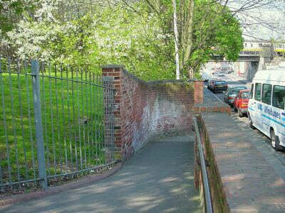 Traces of the canal route so far have been quite difficult to find. But at Brockley Station, indications of the former canal can be seen, and nearby is the Brockley Barge – indicating links with the canal. At this point the canal began its climb and the first of the locks was sited here just by the end of this grassy embankment sited by the footbridge on the west side of Coulgate Street. Although the embankment is not the canal itself, it is appears that when the railway was built, the old canal route here served as a spoil heap. When Brockley Station was eventually built, much of this spoil was removed leaving this stump. Below left we see the canal route as it came off Brockley Cross, on the west side of Coulgate St and on the right can be seen part of this grassy embankment, by the brick wall, from whence one can look straight along the route of the canal as it progressed towards Honor Oak. In the foreground was the site of the first lock of this long climb, being no.11.