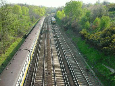 These two pictures look north (above right) and south (below left) from the Dalrymple Road footbridge. The extent of the railway cutting is apparent. It does the imagination no justice trying to envisage the lock flight from this point where no.17 once stood with its swing bridge (somewhere about at the height where the roof of the train is!) Locks 16 to 12 were to the north, whilst 18 to 20 were to the south.