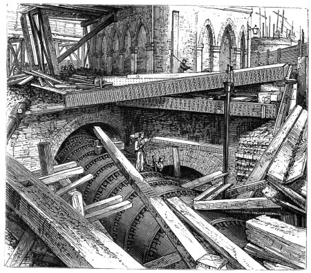 The Fleet in its cast iron conduit during construction of St Pancras. Copyright has expired according to Wikkipedia