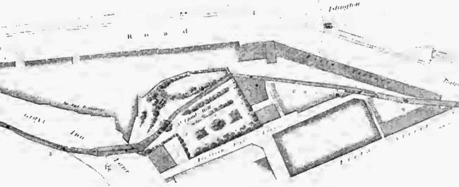 Kings Cross Bridge/St Chads Well (at centre) in the early 19th Century. Pentonville Road at top and Grays Inn Road left bottom