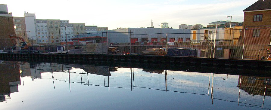 Before Kleine Wharf on the Regents Canal was built, the vacant site ensured spectacular views across the Fleet Valley to Euston and the Telecom Tower during the winter of 2007/08. Clearly in the early days of the Regents Canal boat crews would have had an excellent view of the Fleet River meandering in its valley.