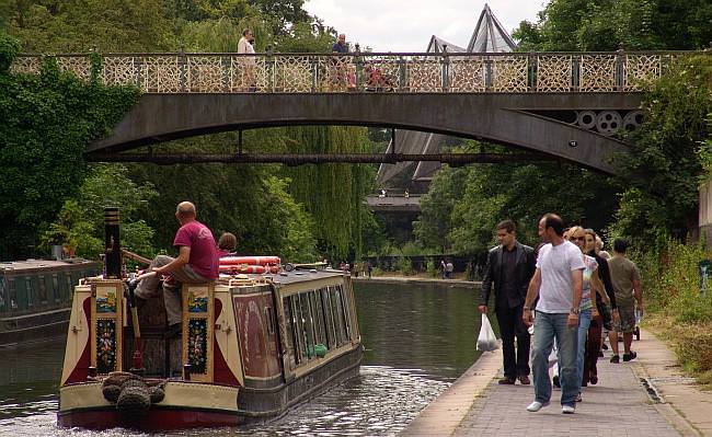 At the end of the Regents Park section boats turn sharp left for Camden Town. The canal once went straight on to Cumberland Basin near Great Portland Street