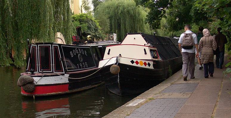 Walkers admiring Bognor and her butty at Camden visitor moorings.