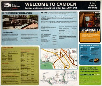 Camden Visitor Moorings Information Board.