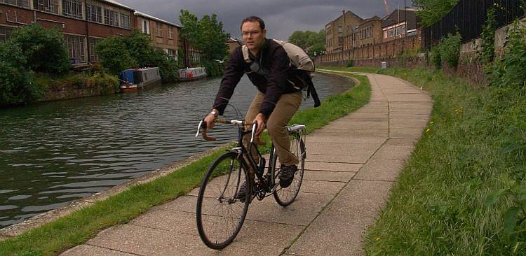 Cycling on the towpath near Southgate Road.