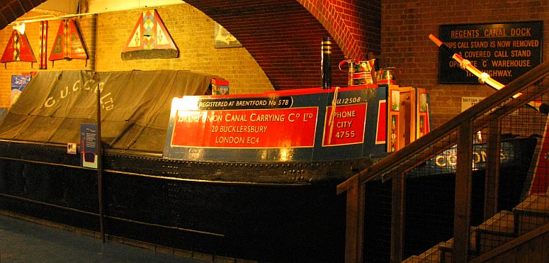 The butty Coronis in its setting within the London Canal Museum at Kings Cross.