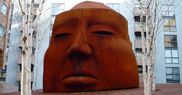Strange head sculpture of Hitchock inside the Gainsborough complex! Perhaps suitable for a bit of crapping practice by The Birds?