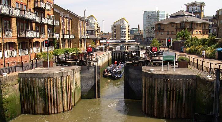 Limehouse Lock – it leads into the River Thames – England’s longest navigable waterway!