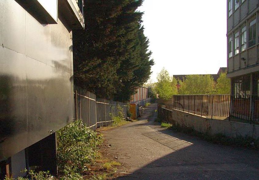 Canal Approach on the east side of the London and Greenwich Railway route. This was the course of the canal and at the base of the buildings along the left side can be seen many mooring rings!