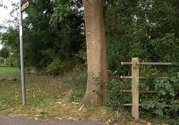 Not much can be seen for the first mile or so, as new development has encroached or destroyed the route of the feeder. However where Bury Street and Breakspeare Road meet, near to Ruislip Lido, a public footpath sign indicates a route that actually runs along the mostly obliterated feeder route. Right by the junction itself, as in the picture shown, a small bit of the feeder can be seen in the trees. As one walks southwestwards, the route passes the rear of new housing, and there are few clues to the feeder’s existence.