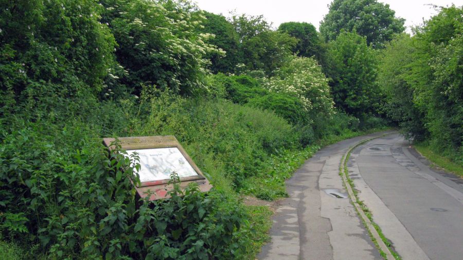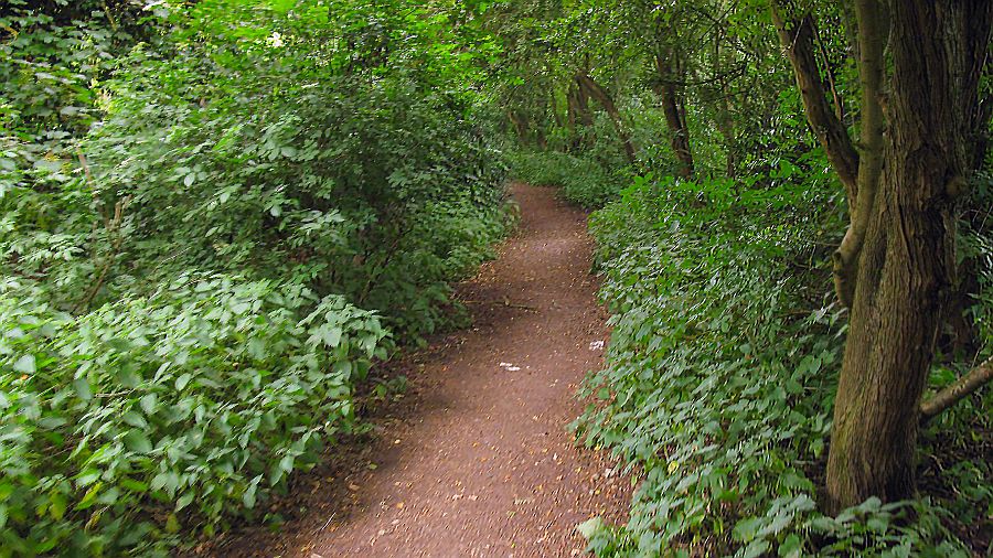 The canal’s alignment is within these trees ahead, and the heritage trail enters the trees to run along the former canal itself. This section is the very last substantial length of the former canal still in existence nearest to Basingstoke.